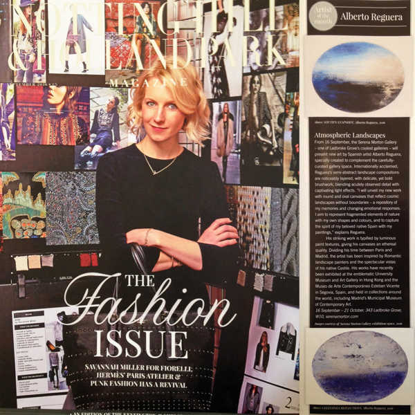 ‘His striking work is typified by luminous paint textures, giving his canvases an ethereal quality’ The Notting Hill and Holland Park Magazine