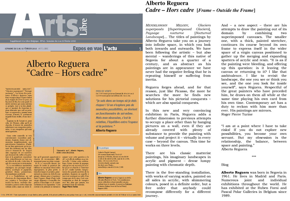 Alberto Reguera solo show reviewed by art critic by Claude Lorent.